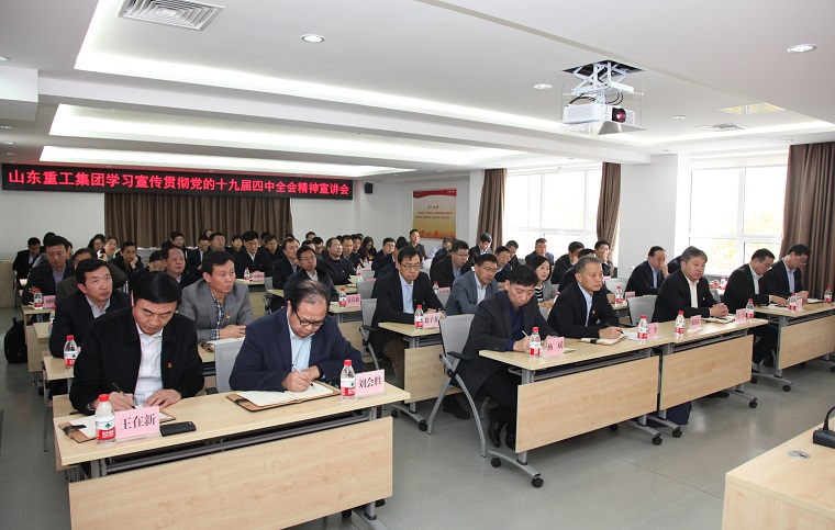根據(jù)國資委統(tǒng)一安排部署,11月29日下午,省國資委黨委委員、副主任邵澤武同志到山東重工集團(tuán)總部,為廣大黨員干部宣講黨的十九屆四中全會精神。