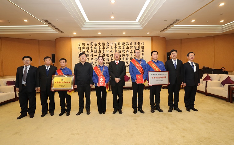 會(huì)前,凌文等領(lǐng)導(dǎo)會(huì)見(jiàn)了濰柴報(bào)告團(tuán)成員,并為濰柴動(dòng)力商用車(chē)動(dòng)力總成電控系統(tǒng)研發(fā)團(tuán)隊(duì)頒發(fā)“青春擔(dān)當(dāng)好團(tuán)隊(duì)”獎(jiǎng)牌,為濰柴青年科技創(chuàng)新團(tuán)隊(duì)頒發(fā)山東省五一勞動(dòng)獎(jiǎng)狀,為6名濰柴優(yōu)秀青年科技工作者授予山東省五一勞動(dòng)獎(jiǎng)?wù)?,以表彰他們?yōu)樯綎|裝備制造業(yè)發(fā)展做出的貢獻(xiàn)。