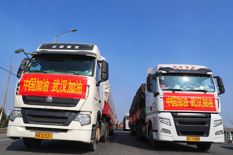 2月3日下午1點(diǎn),在山東濰坊308國道與羊田路交叉路口,10輛中國重汽汕德卡、豪沃整裝待發(fā),車上滿載濰柴動(dòng)力捐贈(zèng)武漢疫區(qū)的首批200多噸新鮮優(yōu)質(zhì)蔬菜。