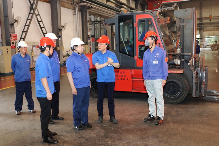 6月26日上午8:30,譚旭光來到濰柴鑄鍛公司,看望端午節(jié)期間奮戰(zhàn)在高產(chǎn)一線的鑄造員工。