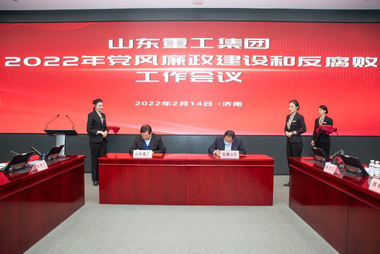 2月14日下午2:00,山東重工集團召開2022年黨風廉政建設(shè)和反腐敗工作會議,傳達學習了十九屆中央紀委六次全會和省紀委十一屆七次全會精神。黨委書記譚旭光與各權(quán)屬公司黨委書記簽訂黨風廉政建設(shè)黨委主體責任書,安排部署黨風廉政建設(shè)和反腐敗工作以及省委巡視反饋問題整改工作。